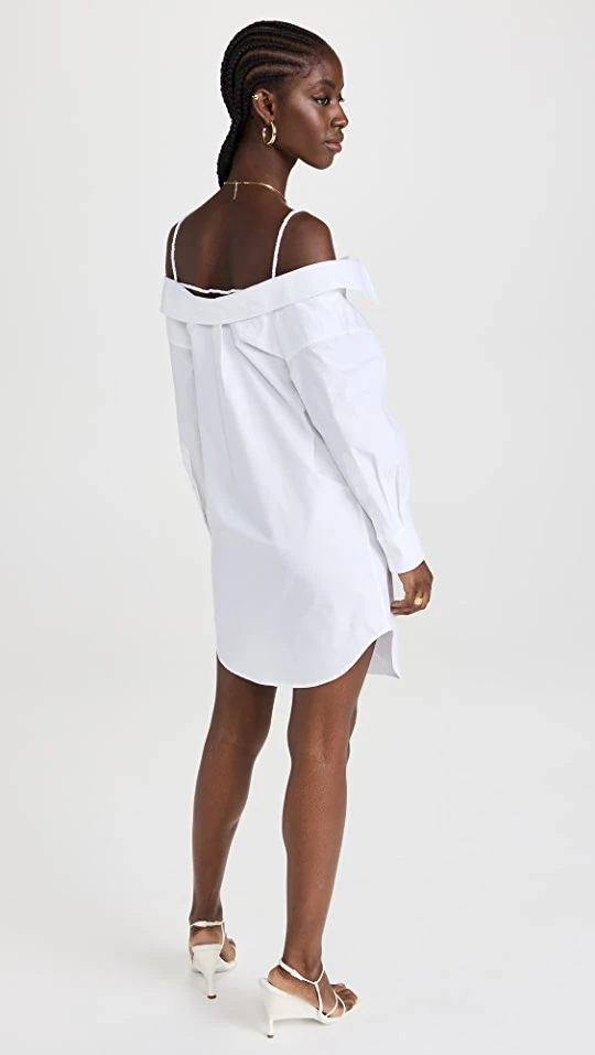 - Off-shoulder collared neckline