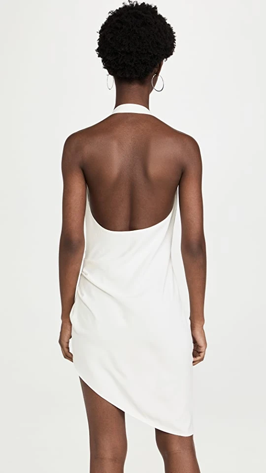 A silky slip dress from the specialists in special-occasion dressing at Amanda Uprichard. This piece adds a number of distinct elements to a classic silhouette, like an asymmetrical skirt and a knotted halter neckline.