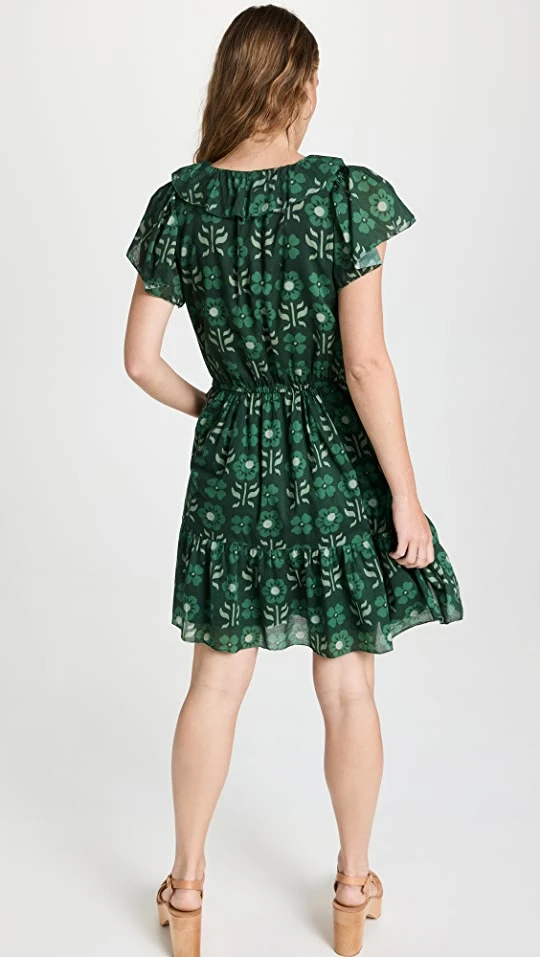 - Floral print and ruffle trim