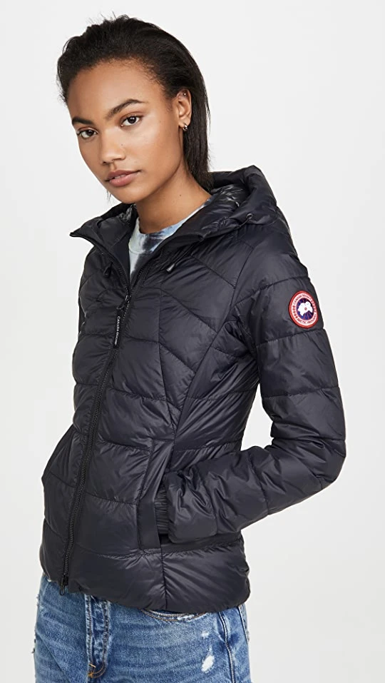 A reliably warm Canada Goose parka with a sleek, waist-length silhouette. This quilted jacket is punctuated with the label’s signature sleeve patch, and features a packable design that comes in handy if you’re taking a trip and need to be prepared for any type of weather.