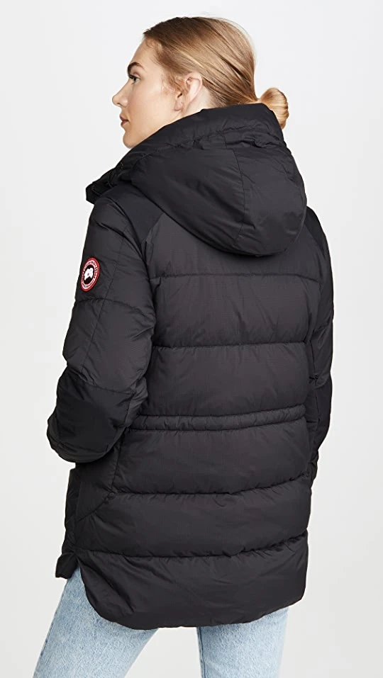 - 2-way adjustable down-filled hood with signature double-stripe reflective details at back
