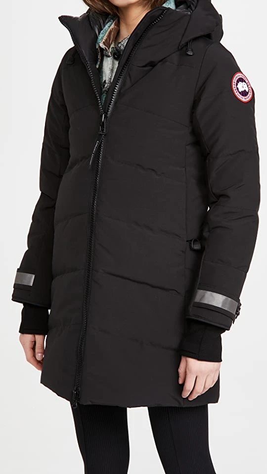 - Down-filled drawstring hood with tricot lined chin and collar