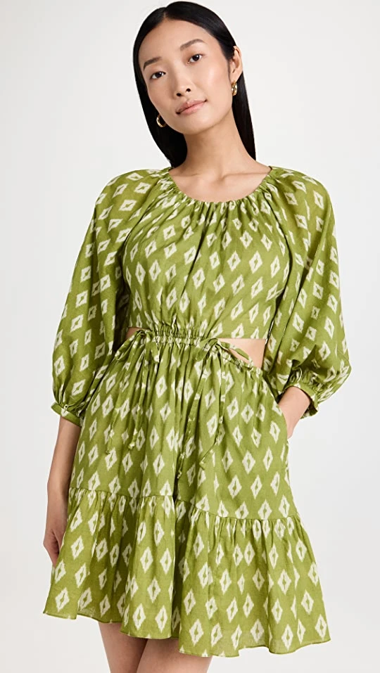- Round neck and elbow-length puff sleeves