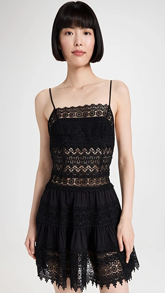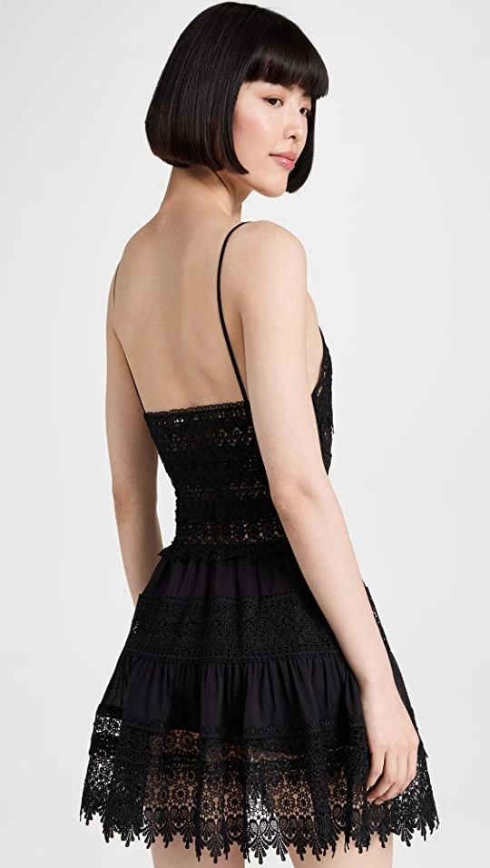 The Charo Ruiz Joya dress is designed in a flirty mini silhouette with crocheted lace through the bodice and skirt. Wear it on vacation over your bikini with wrap up sandals, or dress it up for dinner with heels.