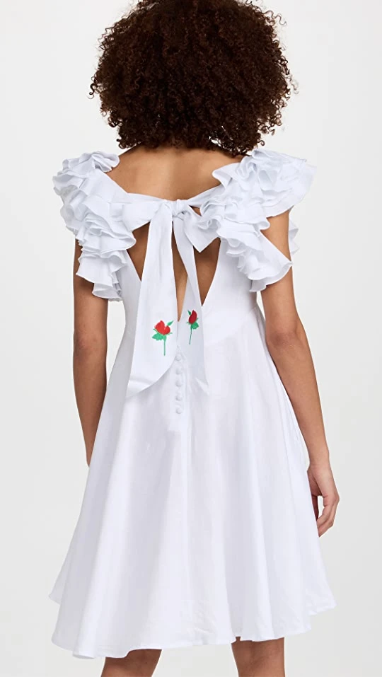 Dressed up with layered ruffles at the shoulders and colorful floral embroidery, this Fanm Mon dress won’t fail to make an impression. Complete your look with flat sandals and accessorize with understated jewelry.