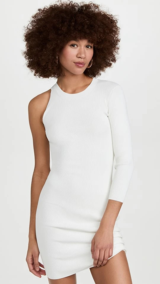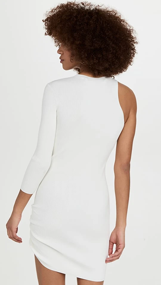 Featuring a sleek and single-shoulder silhouette accented with ruching, this IRO dress is a curve-conforming mini in a versatile shade of white—meaning you’ll want to pair it with all sorts of heels.