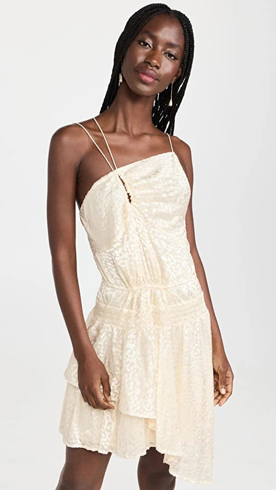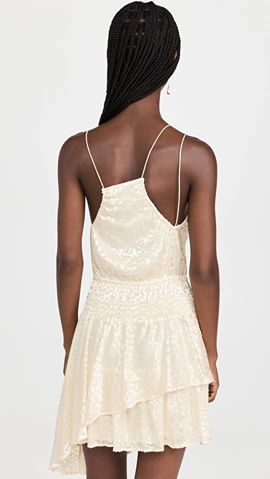 - Asymmetrical square neckline and ruffle hem