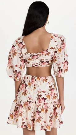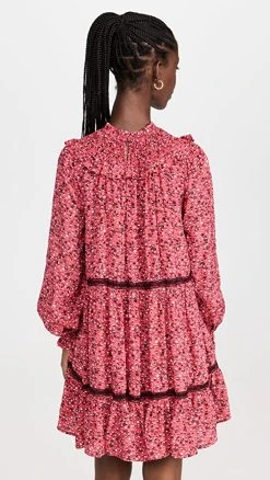Scotch & Soda Smocked And Tiered Long Sleeved Dress Space Floral Scarlet