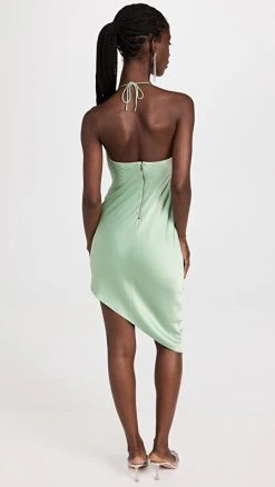 Alice + Olivia Harmony Asymmetrical Deep Cowl Slip Dress Light Sage