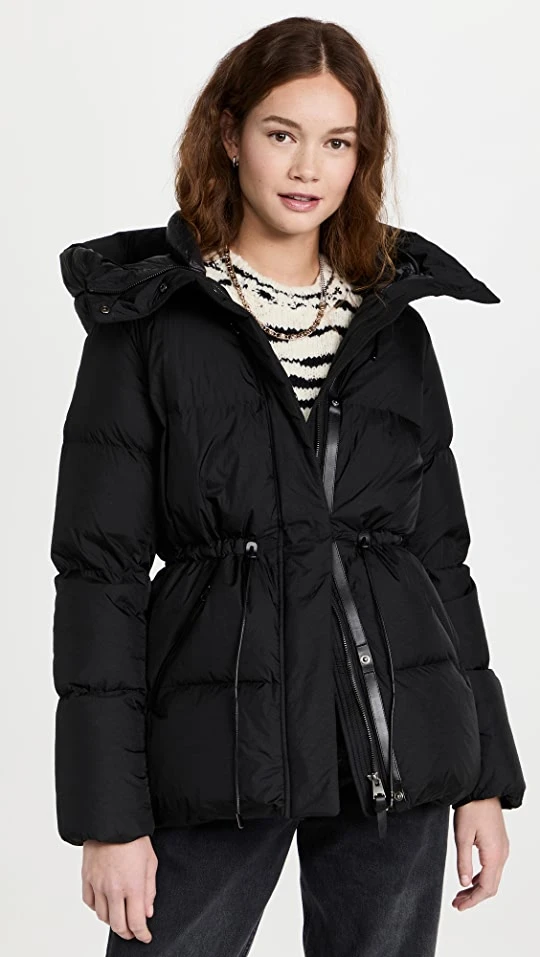 - Hidden snap and zip closure placket
