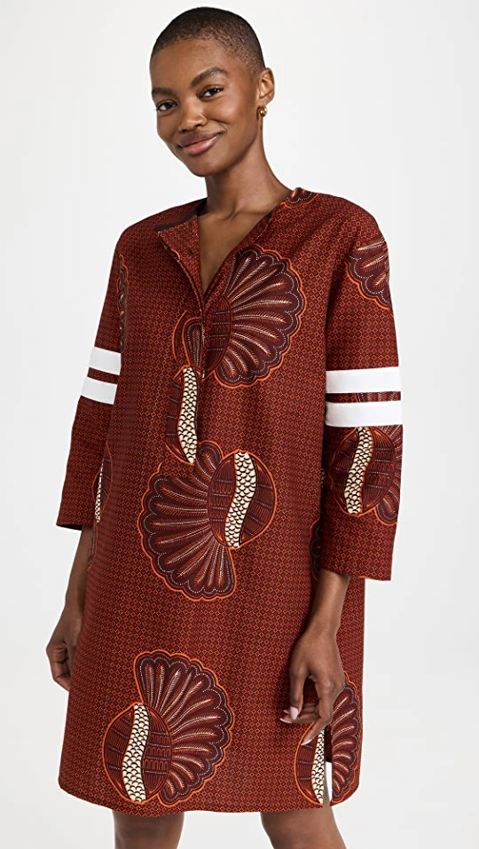 - Round neckline and partial button placket