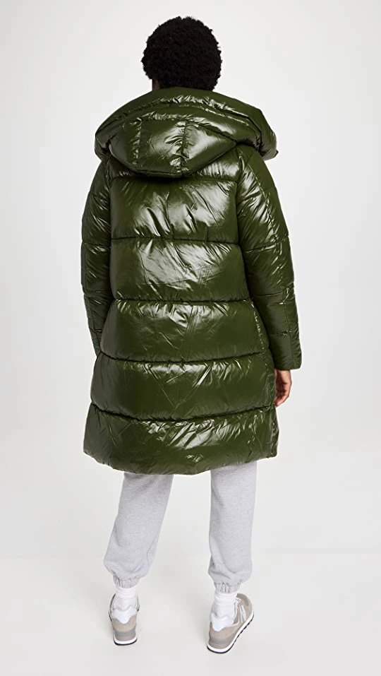 A dependably warm Save The Duck Isabel puffer jacket for inclement weather, featuring a premium fill, a slouchy hood, and extra-glossy fabric for an eye-catching look.