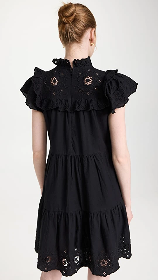 Embellished with ruffles, flutter sleeves, and intricate lace, this Sea mini dress is a prettier version of a classic little black dress. To complete your look, add tonal sandals and gold-tone jewelry.
