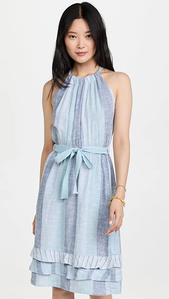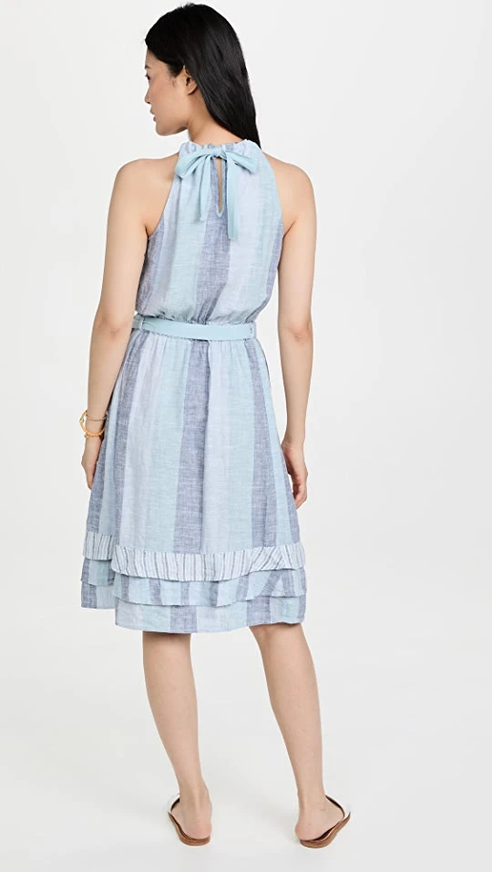 Linen-blend fabric with low-key stripes composes this understated Splendid dress. Ties add definition to the waist, and the hem is finished with tidy tiers.