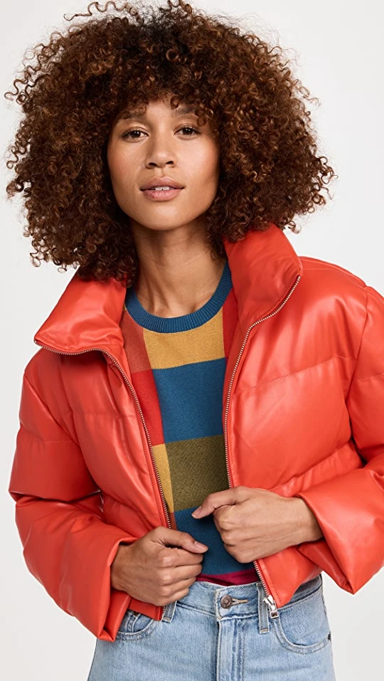 - Stand collar and exposed zip placket