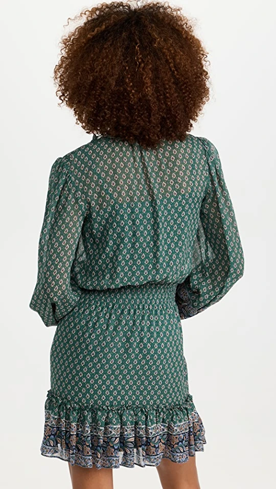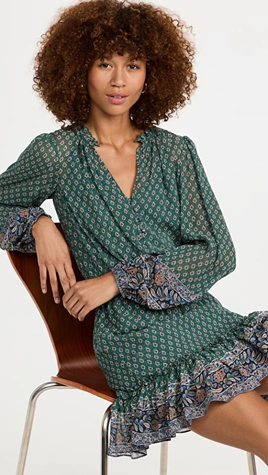 A Veronica Beard dress that splits the difference between occasion-worthy polish and free-spirited style. Crafted from pure silk and intricately patterned, this piece finishes with ruffled contrast trim at the cuffs and hem. Wear yours with the heeled sandals of your choice.